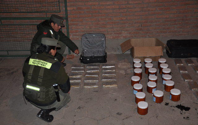 Al requisar el rodado hallaron dos valijas en las que se trasladaban 29 panes compactos de estupefaciente.