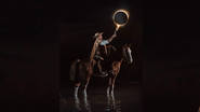 La postal muestra a un gaucho, montado a caballo sobre el agua, con una antorcha apuntada hacia el cielo, como encendiendo el fenómeno astronómico que brindaron la Luna y el Sol.