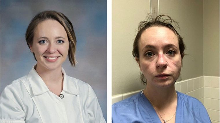 La trabajadora de la salud, de 27 años, mostró las marcas del cansancio en su rostro luego de casi un año de agotador trabajo en un hospital de Tennessee, Estados Unidos.