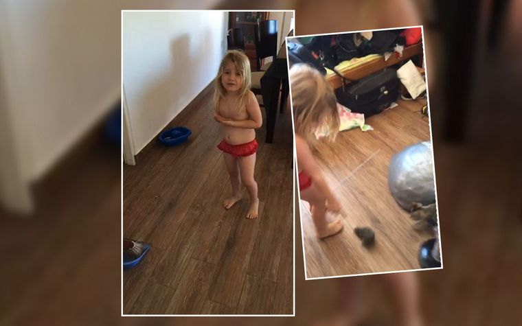 En las imágenes se puede ver a una niña de no más de tres años que intenta mostrarle a su madre que el gato de la familia estaba jugando con “un conejito bebé”.
