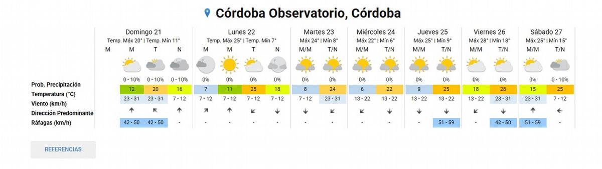 Según datos del Servicio Meteorológico Nacional (SMN), se espera una máxima de 20° y una mínima de 11°, con ráfagas que podrían superar los 50 km/h durante la tarde. La probabilidad de precipitaciones es baja, de entre 0 y 10%.