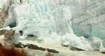 Los trozos de las paredes del Glaciar siguieron cayendo durante todo el sábado, en algunos casos con bloques de más de 60 metros de altura, como consecuencia de la filtración constante de agua entre los dos espejos de agua.