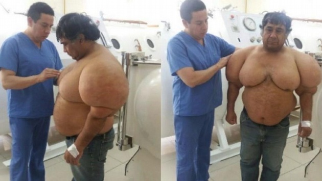 El hombre intentó buscar una cura a su hinchazón pero no tenía el dinero para hacerlo y los doctores nunca habían visto un caso igual.