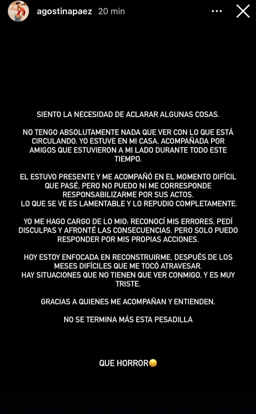 El cierre de su publicación reflejó el impacto emocional del caso: “No se termina más esta pesadilla. Qué horror”.