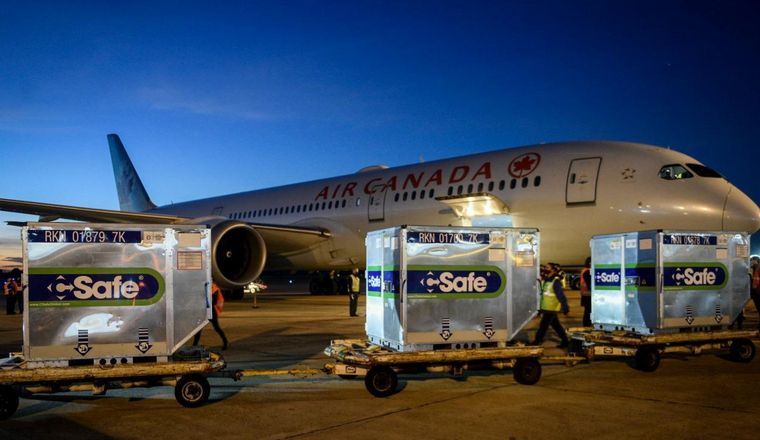 El vuelo AC7326 de Air Canada, procedente de Toronto, aterrizó en el aeropuerto internacional de Ezeiza a las 6:45 con una carga en sus bodegas de 2.148.600 dosis que fue recibida en la estación aérea por la ministra de Salud, Carla Vizzotti, y el jefe de Gabinete, Santiago Cafiero.