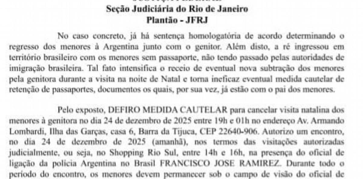 Ante el riesgo inminente, la Justicia Federal brasileña suspendió la visita extendida y autorizó solo un encuentro supervisado el 23 de diciembre en un shopping. Interpol montó un operativo de emergencia: un agente argentino alojó y custodió a padre e hijos esa noche, y al día siguiente los escoltó al aeropuerto.