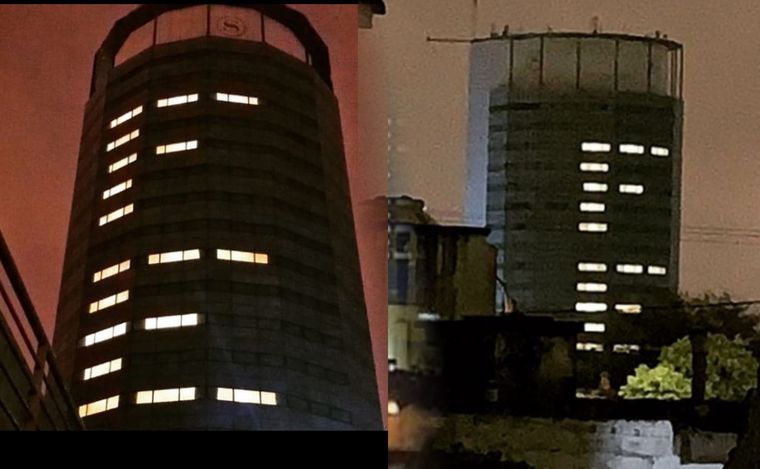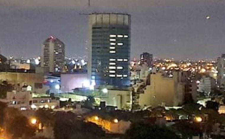 El edificio, un ícono de la zona de barrio Alto Alberdi, iluminó sus habitaciones de forma estratégica para formar la palabra "Fe" en medio de la oscuridad.