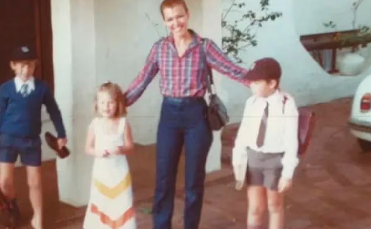 Kimbal, Tosca, y Elon Musk con su madre antes de ir al colegio. (Maye Musk Instagram)