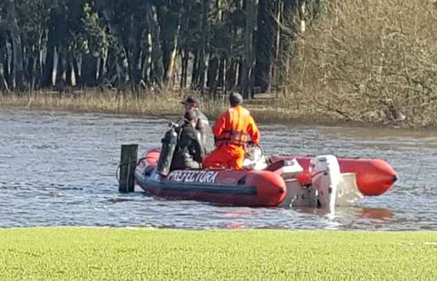 Personal de la Prefectura Naval, Bomberos, Defensa Civil y rescatistas reiniciaron esta mañana la búsqueda de Mauricio Zúñiga que lamentablemente apareció sin vida.