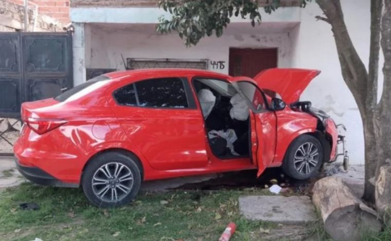 La escena quedó registrada por las cámaras de seguridad de una vivienda que muestra el momento en el que el auto robado impactó contra el frente de la casa de la víctima.