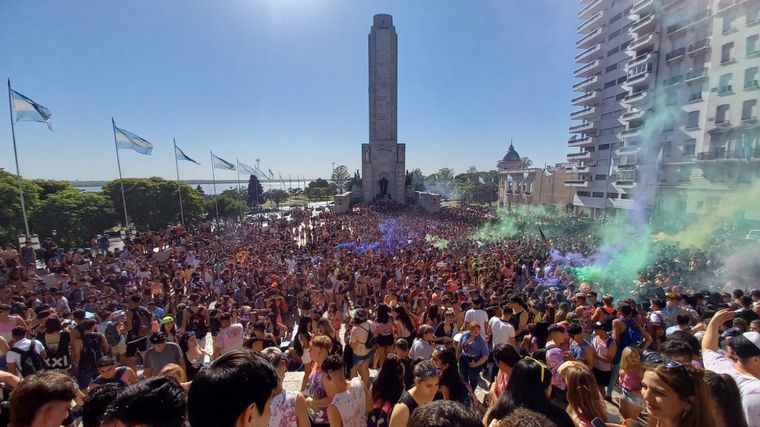 Miles de jóvenes colman el Monumento a la Bandera, donde festejan pasar al último año. En 2020 se había sido suspendido por la pandemia.