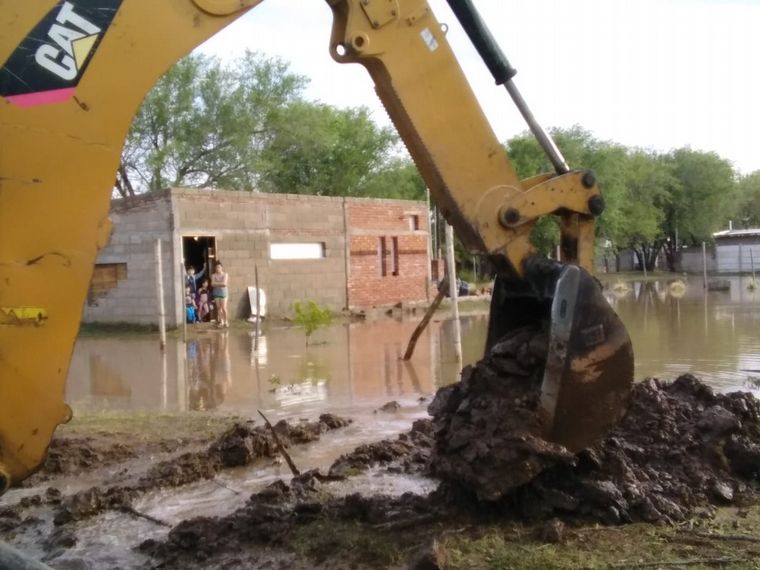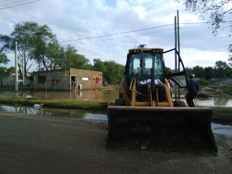 En Las Higueras las máquinas trabajan para liberar el agua que ingresó en las casas.