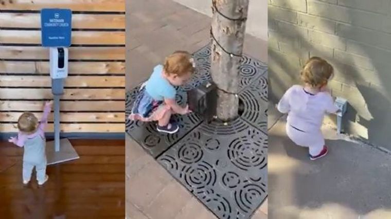 Las imágenes han conquistando las redes sociales en los últimos días por la naturalidad con la que actúa la pequeña ante cualquier objeto que ella considere que es una estación sanitizante.