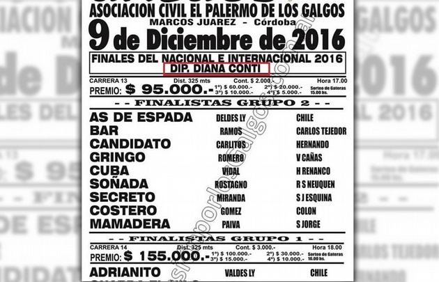 La última carrera de galgos en Inriville se llevó adelante hoy y la competencia llevó un nombre muy particular: "Diputada Diana Conti".