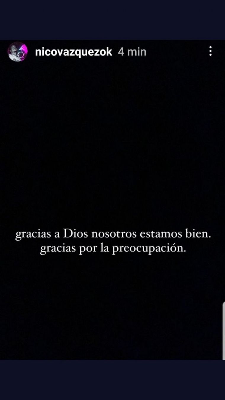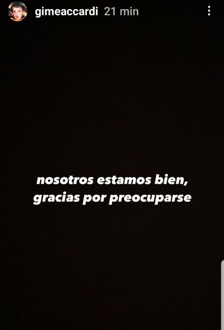 “Nosotros estamos bien, gracias por preocuparse”, escribió Gimena en sus redes, mientras que Nicolás posteó: “Gracias a Dios nosotros estamos. Gracias por la preocupación”.