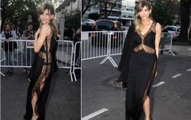 La rubia sorprendió con un sexy vestido negro con transparencias.