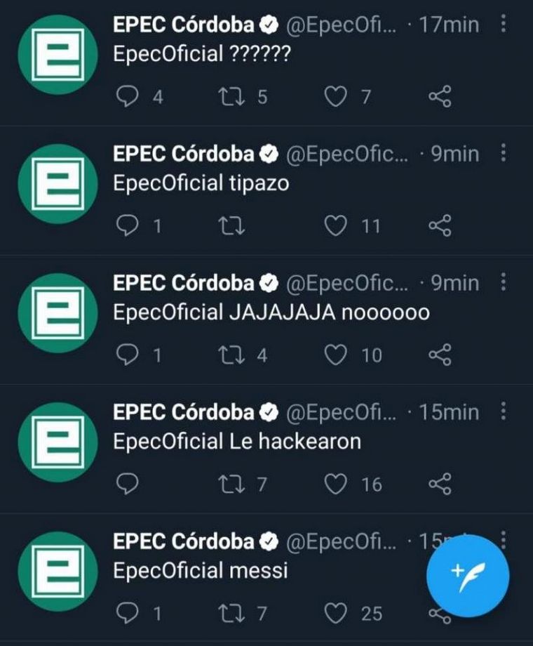 Este domingo, la Empresa Provincial de Energía de Córdoba (Epec) se llevó una ingrata sorpresa: su cuenta de Twitter había sido hackeada.