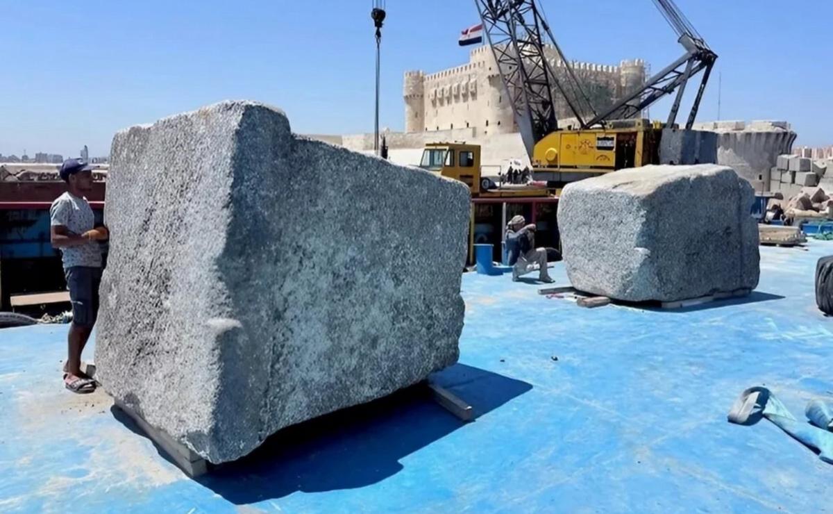 Se trata de 22 bloques monumentales del Faro de Alejandría, que se encontraban en las profundidades del mar Mediterráneo.