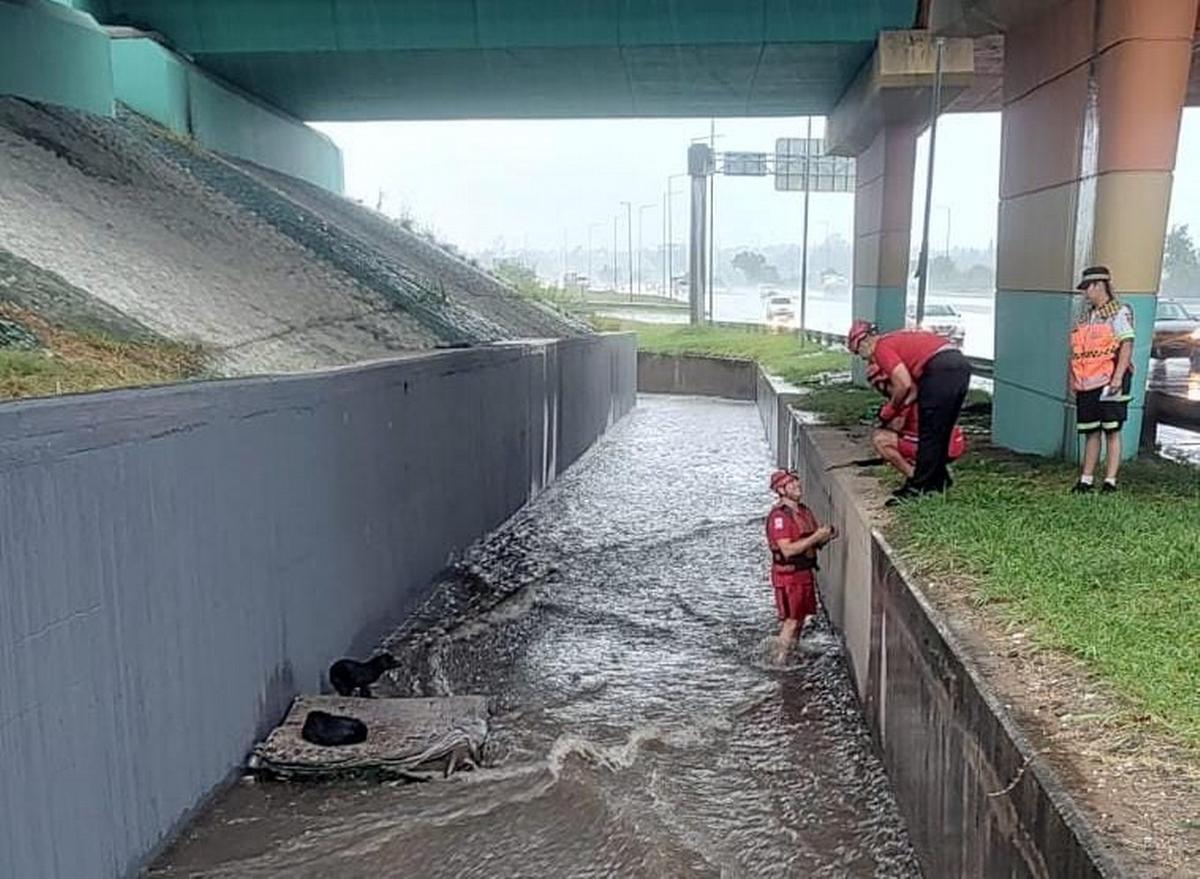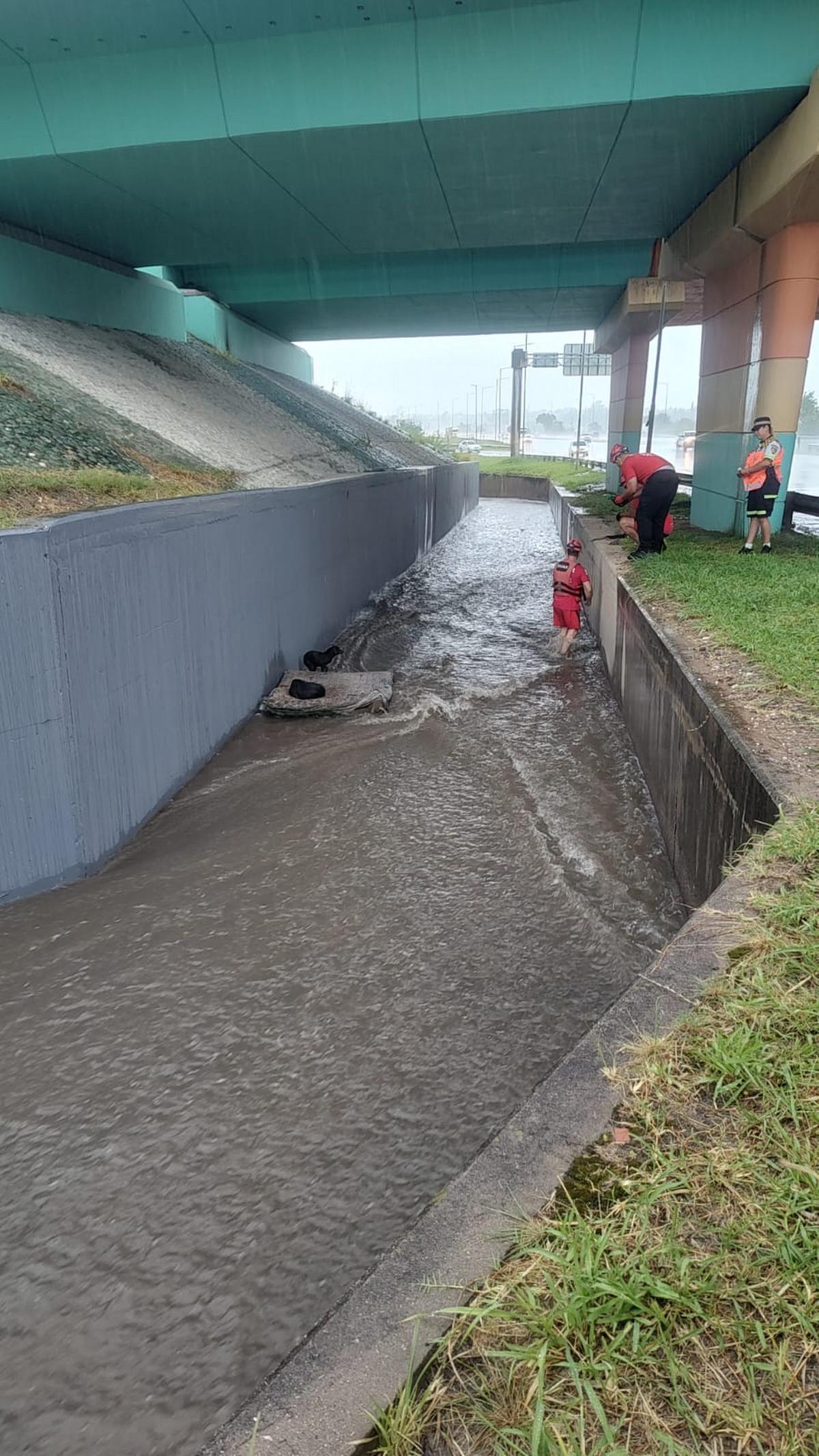 Heroico rescate: salvaron a dos perros de ahogarse en desagüe de Circunvalación