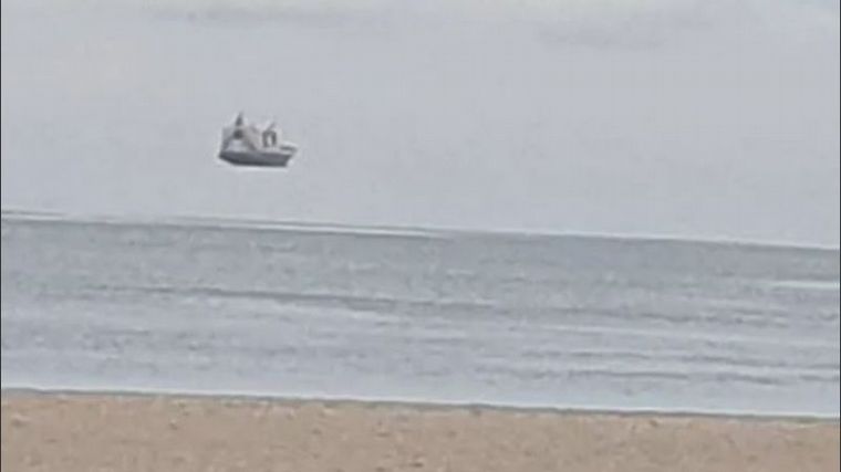 Ilusión óptica: un barco "fantasma" parece volar en el mar