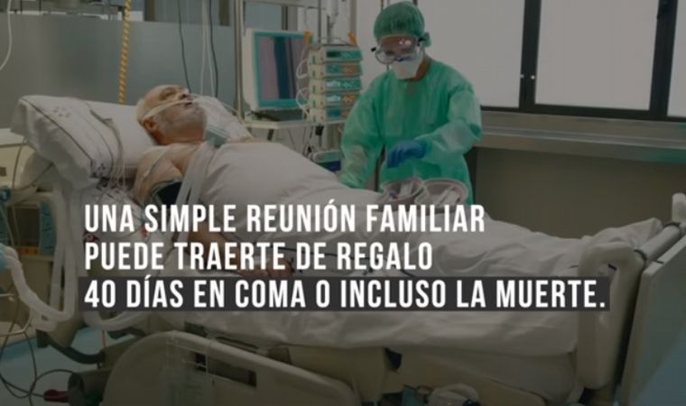 "Una simple reunión familiar puede traerte de regalo 40 días en coma o incluso la muerte", es el mensaje principal del spot, en el que se ve a un abuelo que, tras un encuentro familiar, es internado en grave estado de salud.
