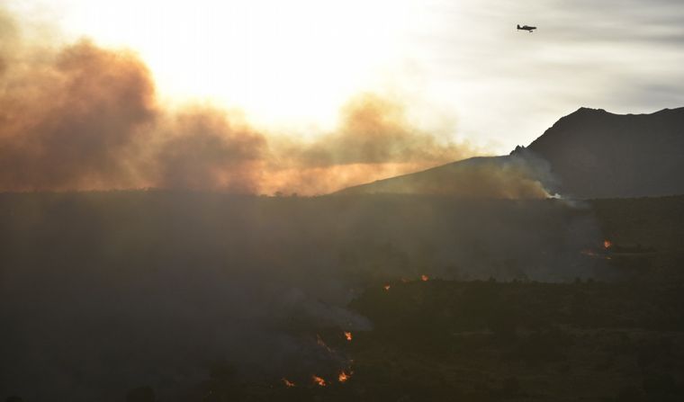 Tres aviones hidrantes, dos helicópteros y tres brigadas terrestres trabajan para apagar las llamas que se iniciaron este martes a la tarde. El fuego consumió pastizales y vegetación en la zona baja.