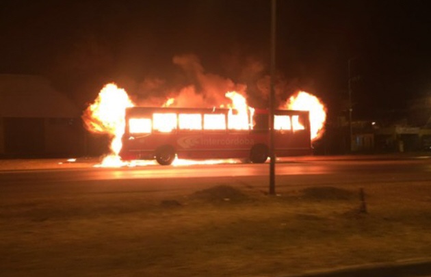 Un colectivo del servicio interurbano sufrió daños totales esta noche al incendiarse por momentos hasta el momento no dilucidados.