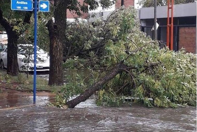 Los vecinos registraron voladuras de techos de chapa, postes y árboles caídos como así zonas anegadas. Mirá las fotos y videos.