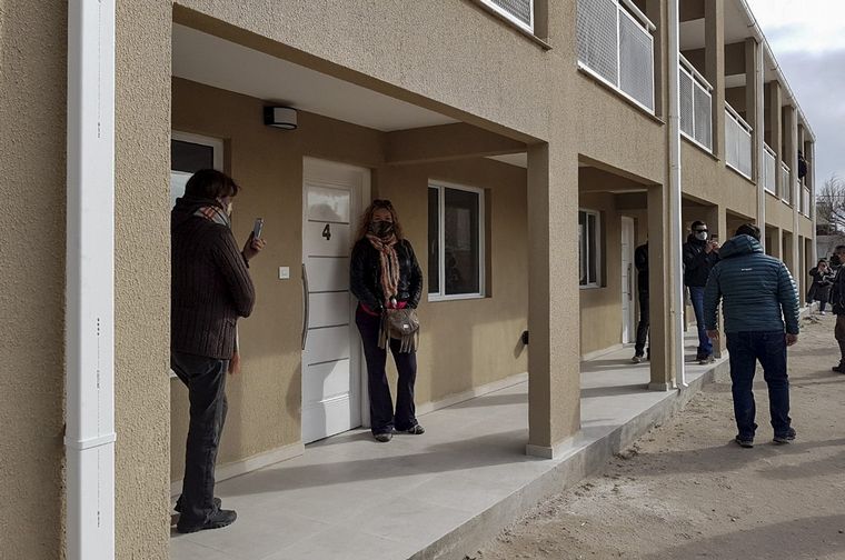 "¡Felicitaciones por su nuevo hogar!", decía el texto de bienvenida que los esperaba colgado de los balcones del primer piso, con la firma de la cooperativa de trabajo Los Amigos, que construyó la obra.