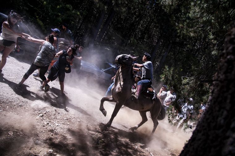 Piedrazos, gas pimienta, caballos y rebenques contra manifestantes por la soberanía del Lago Escondido: hay heridos que fueron trasladados en ambulancia, entre ellos el diputado del Parlasur @gastonharispe y una periodista pic.twitter.com/xh0jQ1A0Bm