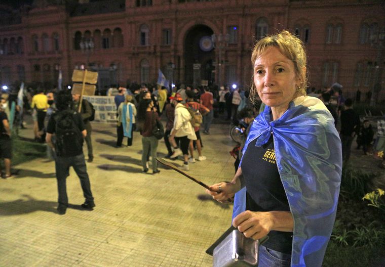 Luego de los empujones y de que la Policía los alejara unos pocos metros del portón, unos pocos manifestantes permanecieron en el lugar hasta después de las 20:00, para desafiar la restricción a la circulación nocturna dispuesta por el Gobierno.