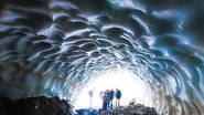 La entrada al túnel aparece como una grieta entre la piedra y la pared de hielo, pero al entrar el turista se encuentra con un virtual cielorraso blanco y cóncavo, iluminado como un plafón escamado de numerosas luces fluorescentes por el efecto prisma mencionado.