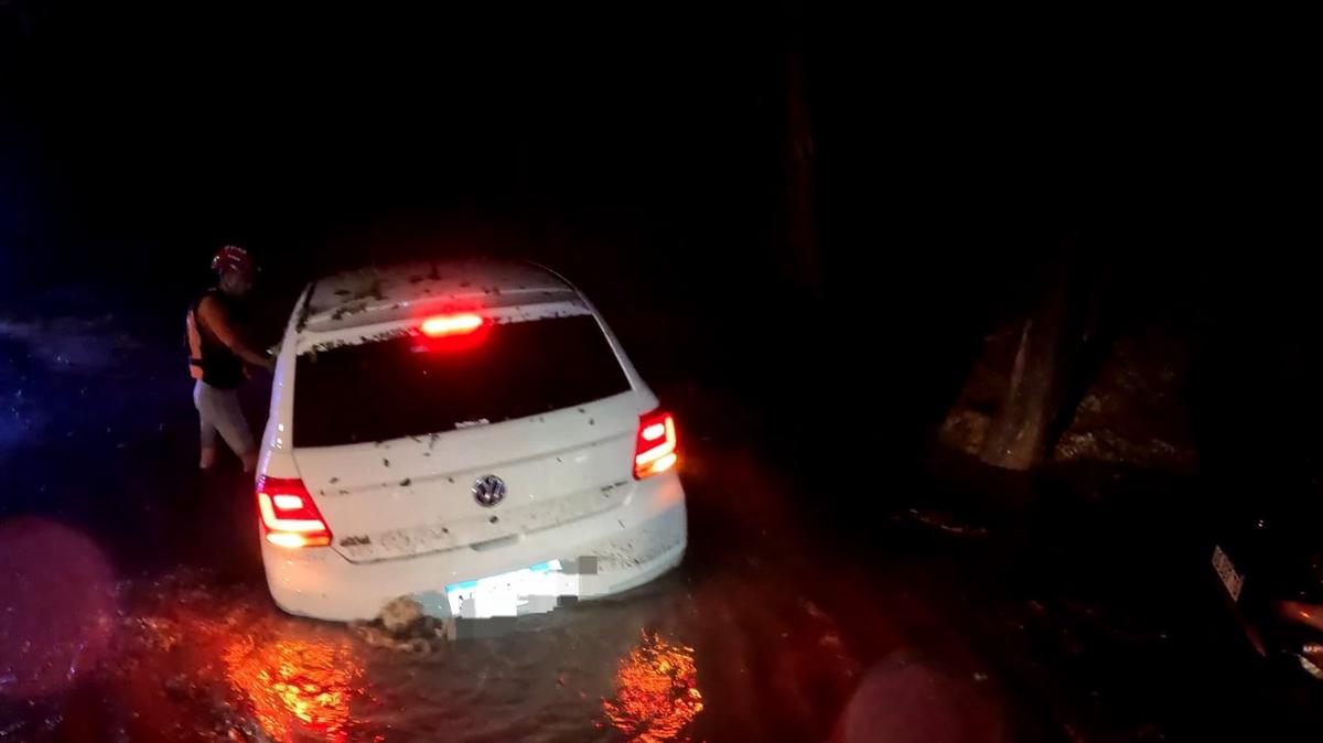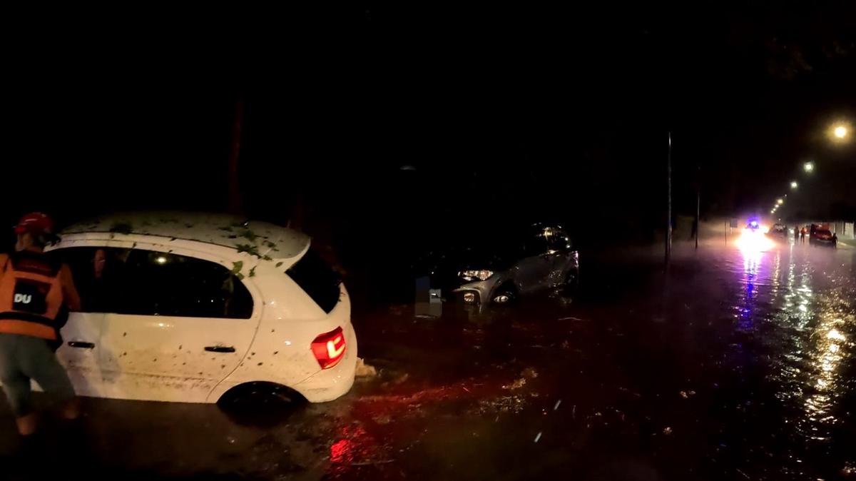 El Duar llevó a cabo un operativo para rescatar a cinco personas que quedaron atrapadas dentro de cuatro vehículos que habían sido anegados en la intersección de calle Carlos Brogin y San Antonio.