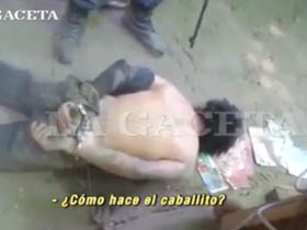 Los maltratos son realizados frente a otro hombre -presuntamente también policía- que ríe y graba la escena con su teléfono celular.