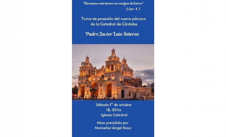El 1° de octubre la emblemática Iglesia Catedral de Córdoba cambiará de párroco y asumirá en ese cargo el sacerdote Javier Luis Soteras.