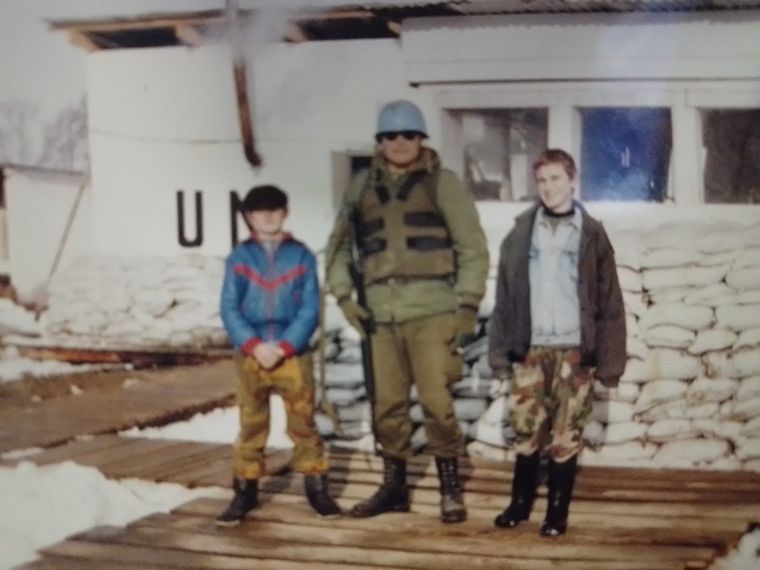 Estuvo a bordo de un barco en el límite de Serbia y Croacia, representando a los Cascos Azules de Naciones Unidas.
