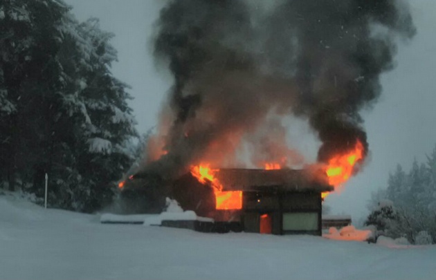 Los Bomberos, en este sentido, tuvieron que despejar el camino de nieve para poder acceder a una casa que se incendiaba en la zona residencial de Villa Belén.