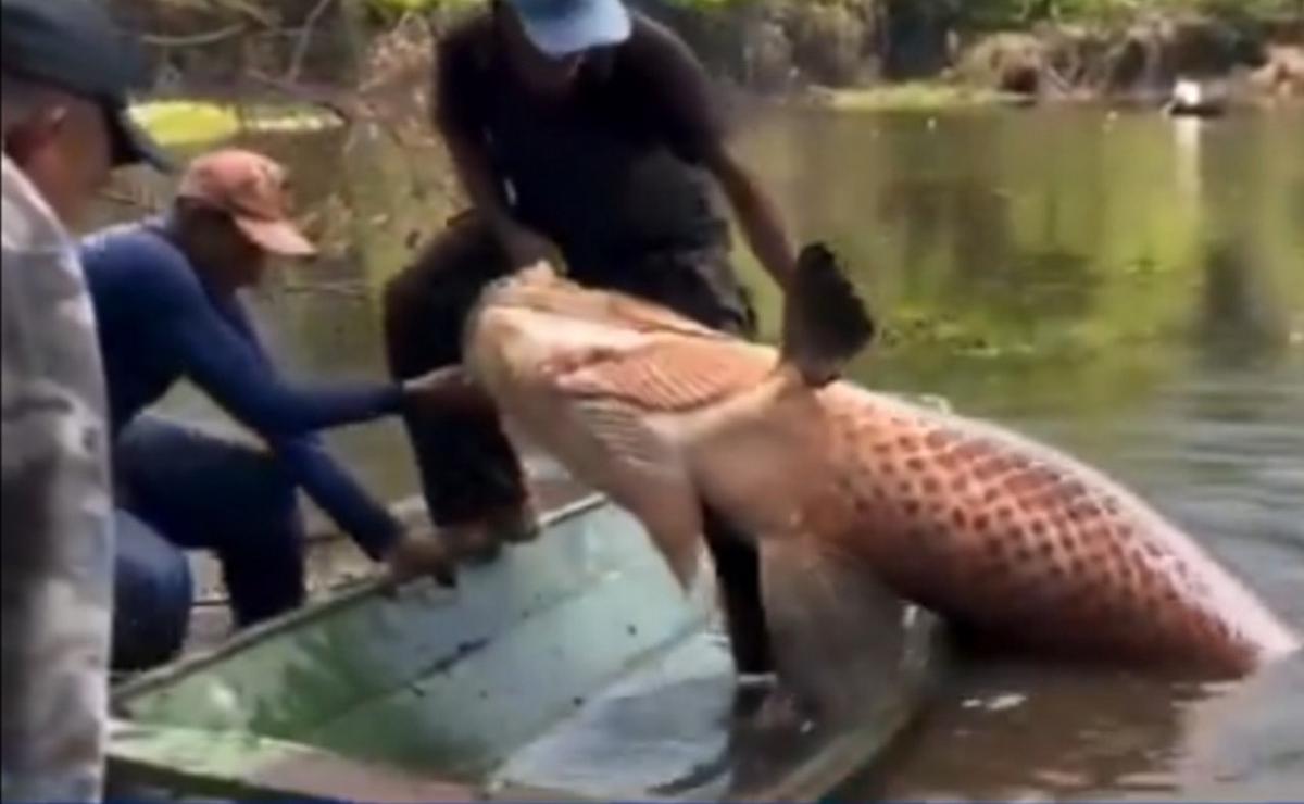 ¿Qué capturó el pescador? Un pirarucú de 150 kilogramos.