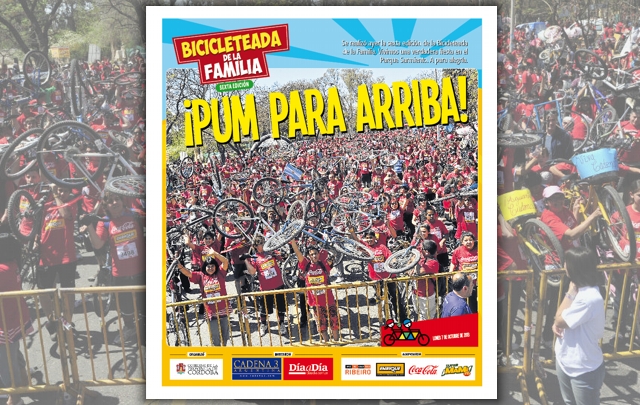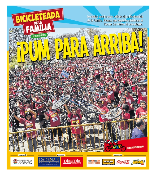 "¡PUM PARA ARRIBA!", así se titula la edición que el diario Día a Día le dedicó a la sexta edición de la Bicicleteada de la Familia en Córdoba. Entrá y mirá la foto.