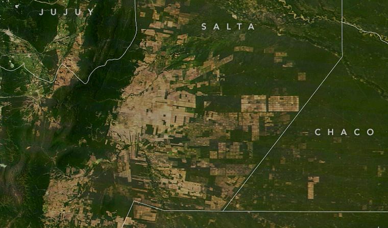 El informe del satélite se compone de imágenes que muestran la deforestación en un lapso de dos décadas alrededor de la provincia de Salta.
