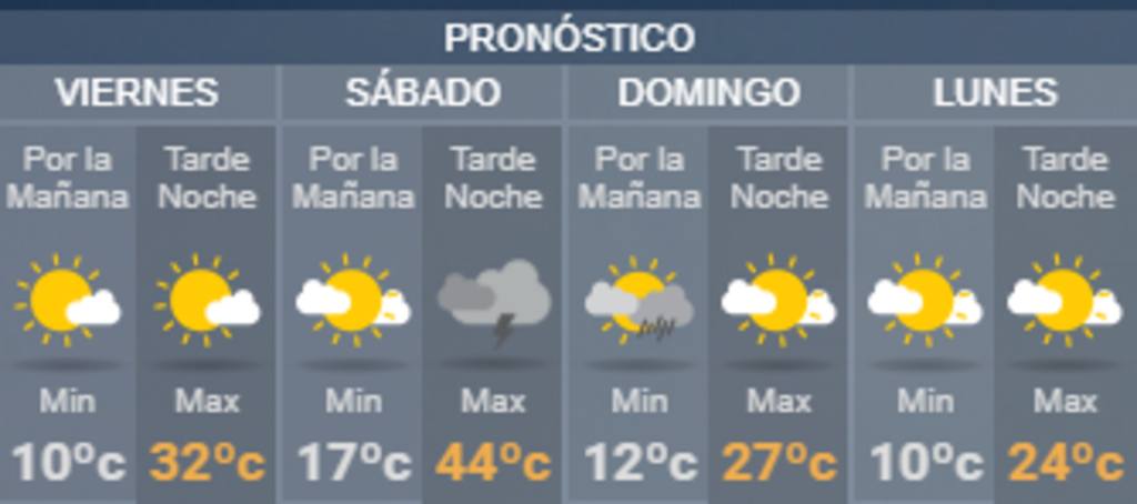 La mínima para el último día hábil de la semana será de 10 grados y la máxima de 32.