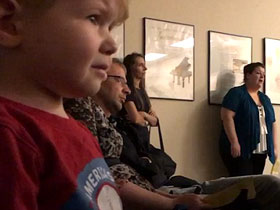 El pequeño Tyler Noftz, de Tampa, Florida, en Estados Unidos, no contiene las lágrimas al escuchar a pieza de música clási que suena en durante una presentación en el recital de piano de su hermana mayor.