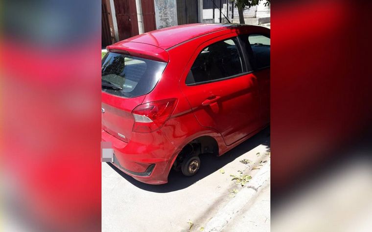 El vehículo se encontraba estacionado en la calle Río Turbio al 1.600. Su propietario lo encontró sin los neumáticos traseros este jueves, momentos antes de salir a trabajar.
