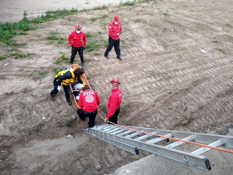 Tiene 35 años y debió ser rescatado por el DUAR. Lo asistió el 107 y lo derivaron al Hospital de Urgencias. Se lesionó la cadera. Video.