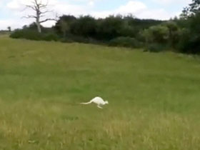 Un grupo de jinetes logró filmar a un wallaby albino (un animal parecido a un canguro) en un campo en la zona de Northamptonshire, en Inglaterra.