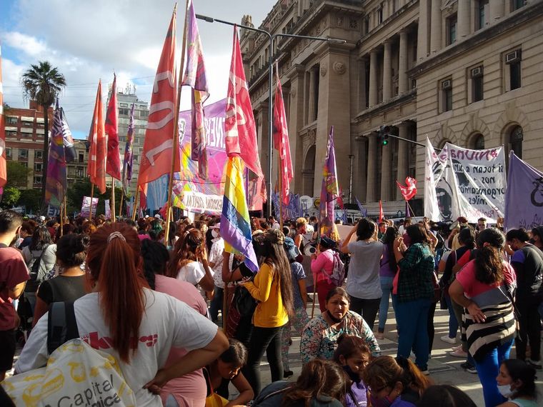 En La Plata, cientos de mujeres, trans, travestis y no binarias de la capital bonaerense y las ciudades de Berisso y Ensenada marcharon hasta los Tribunales platenses y la Casa de Gobierno provincial en reclamo de medidas de protección para las víctimas en situación de violencia de género y que eviten los femicidios.
