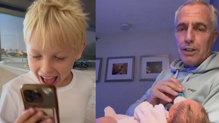 “Mirá, ¿viste qué bonita que es? Es muy parecida a vos cuando eras bebé. Tengo fotos tuyas de cuando eras bebito, muy chiquitito. Así que va a ser bonita como vos. Está dormida ahora, con sueño porque nació a las 4 de la mañana”, señaló el conductor en diálogo con su hijo mayor.