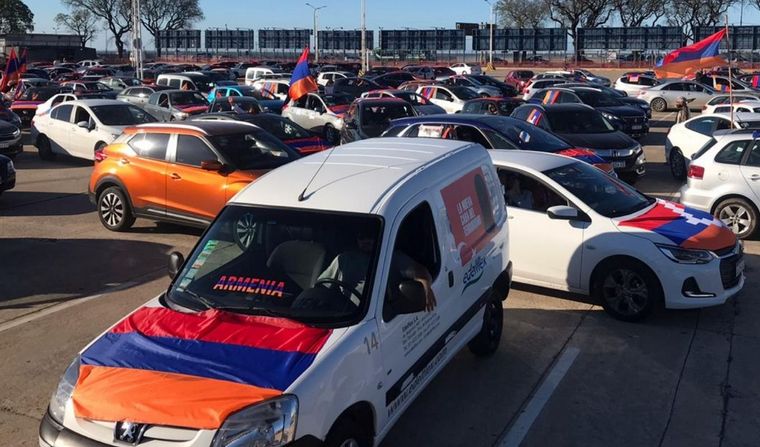 En CABA, la caravana comenzó a las 17,30 desde la zona de Aeroparque en dirección a la Plaza Armenia, en Avenida Figueroa Alcorta, donde culminó la manifestación con acto de la comunidad por la paz.