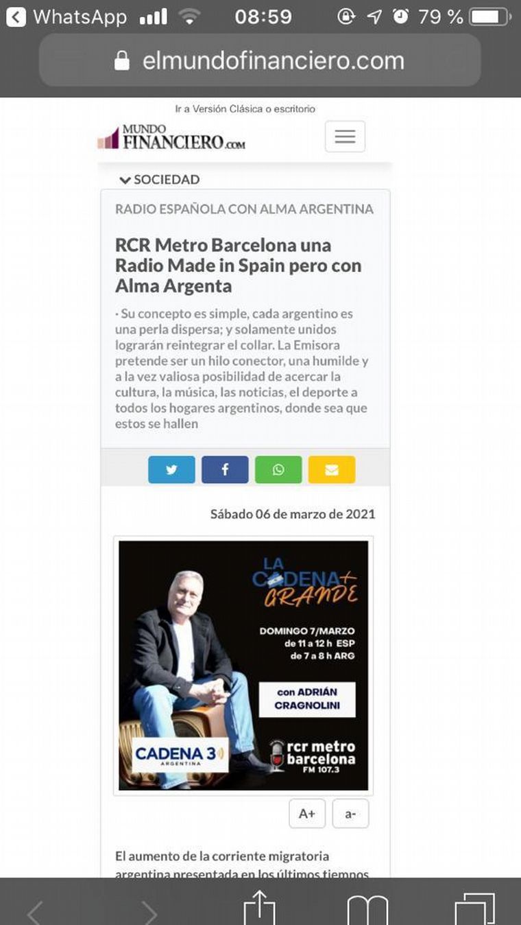 La emisión de “La Cadena más Grande” constituirá un hito en la radiofonía nacional, ya que será el primer programa con una frecuencia regular y permanente cuyo conductor reside fuera de Argentina. Un logro que los avances tecnológicos y la visión estratégica de Cadena 3 y RCR Metro Barcelona han hecho posible.