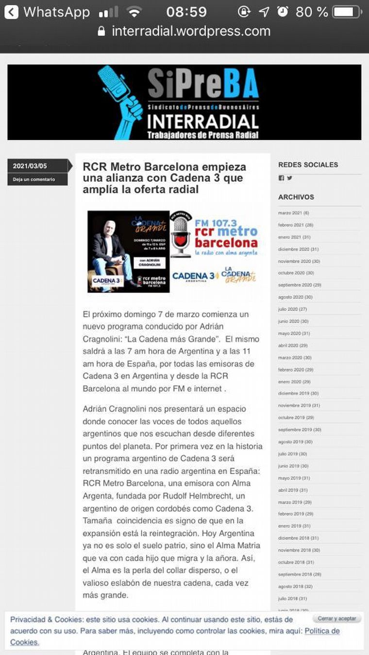 Publicaciones de otros puntos del planeta esperan expectantes el debut de este ciclo que se transmitirá por Cadena 3 y RCR Metro Barcelona, en un hecho histórico para la radiofonía argentina.